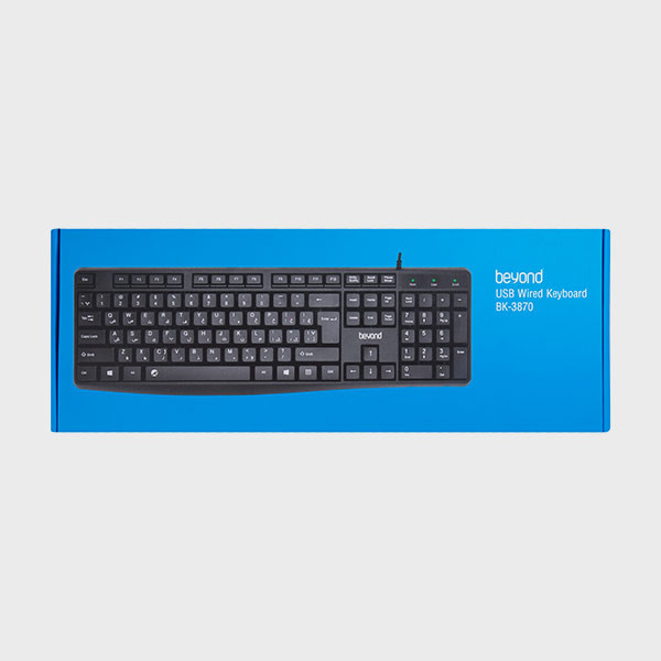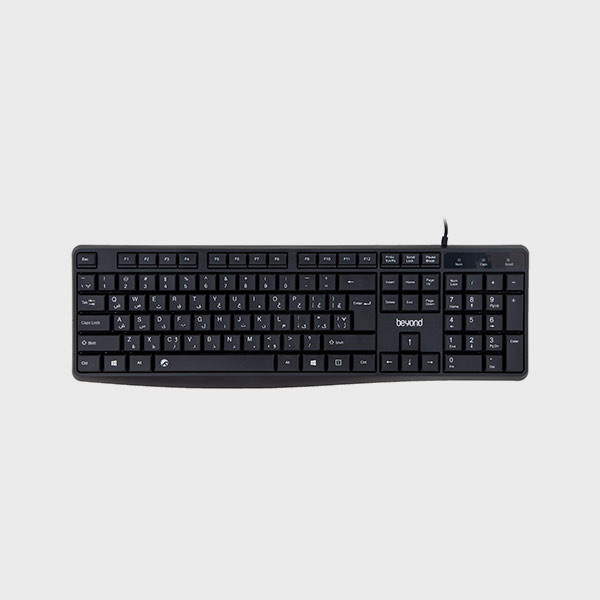 کیبورد «BK-3870» محصولی از برند «بیاند» یکی از زیر مجموعههای شرکت فراسو است که پیشینه خوبی در تولید لوازم جانبی رایانه دارد. این کیبورد از طریق یک کابل USB به رایانه متصل میشود و کاربر را در انجام فعالیتهای کامپیوتری همراهی میکند. طول این کابل برابر با 1.4 متر است که باعث محدود کردن کاربر نمی شود. جنس بدنه این کیبورد از پلاستیک با کیفیت است و میتواند در برابر بسیاری از ضربات مقاومت خوبی از خود نشان میدهد. تعداد کلیدهای کیبورد BK-3870 برابر با 104 عدد است. روی کلیدهای کیببورد بیاند مدل BK-3870 حروف فارسی چاپ شده تا کاربر به راحتی بتواند کلیدهای فارسی را از هم تشخیص دهد. روی کلید «اسپیس» این کیبورد لوگوی شرکت فراسو مشاهده میشود و در قسمت بالای Arrow Keys نام برند Beyond قرار گرفته است. اگر قصد تهیهی یک کیبورد با قیمت مناسب را دارید، مدل BK-3870 میتواند انتخاب مناسبی برای شما باشد.